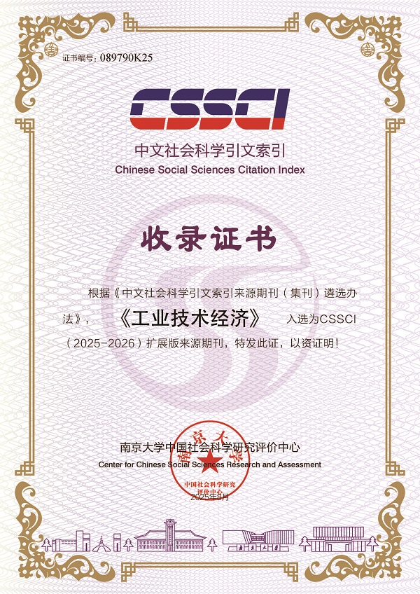 近日,据南京大学中国社会科学研究评价中心消息,根据《中文社会科学引文索引来源期刊(集刊)遴选办法》,《工业技术经济》入选CSSCI(2025-2026)扩展版来源期刊。