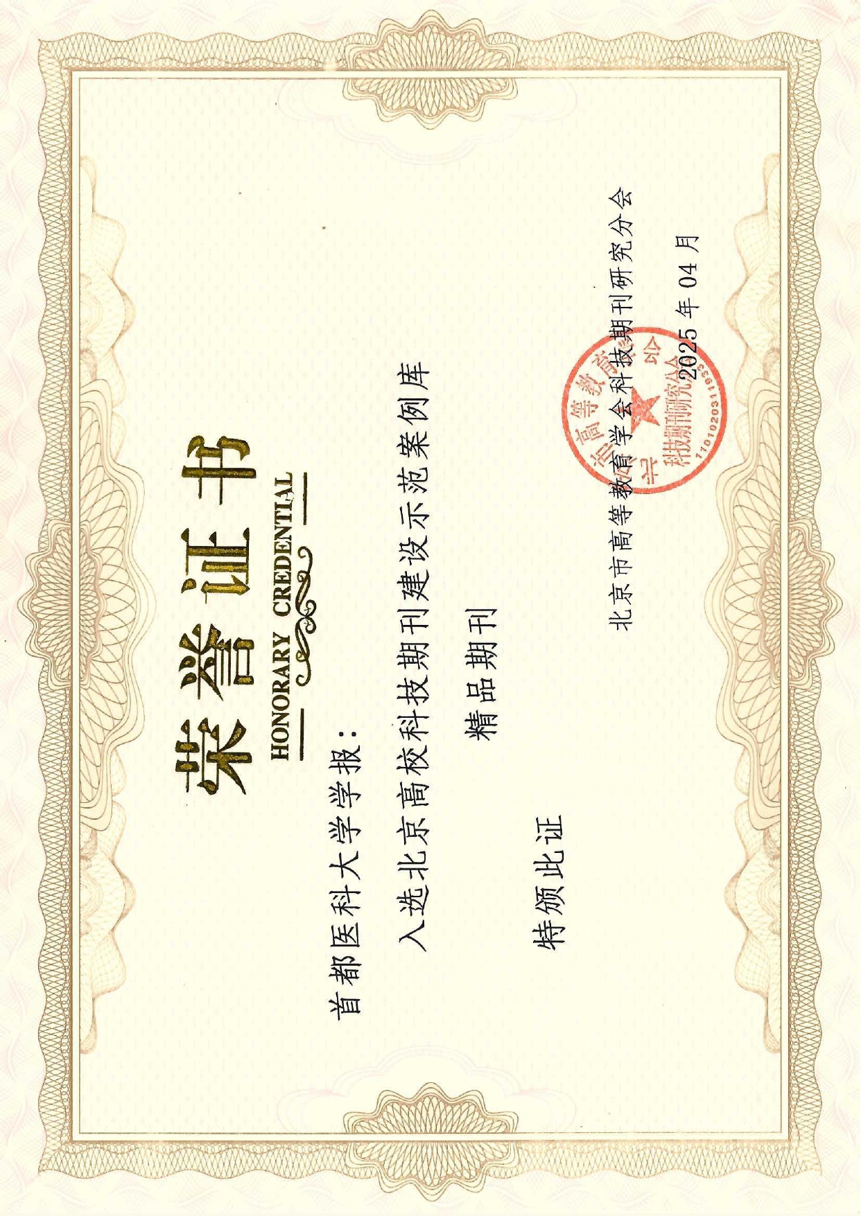《首都医科大学学报》获评2018年度中国高校优秀科技期刊